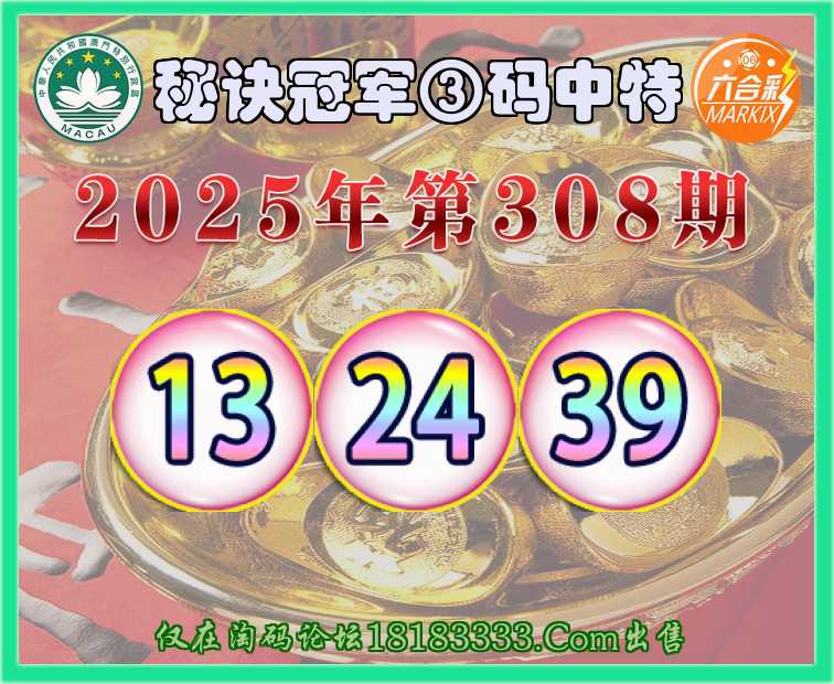 308期:【秘诀冠军】 ③码中特【13.24.39】开:39准