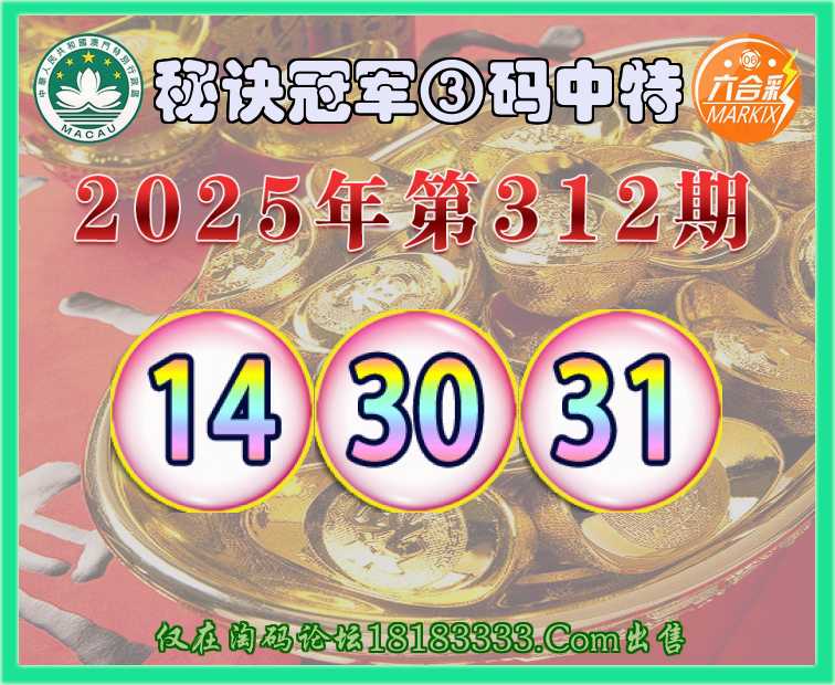 312期:【秘诀冠军】 ③码中特【14.30.31】开:14准