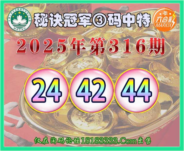 316期:【秘诀冠军】 ③码中特【24.42.44】开:24准