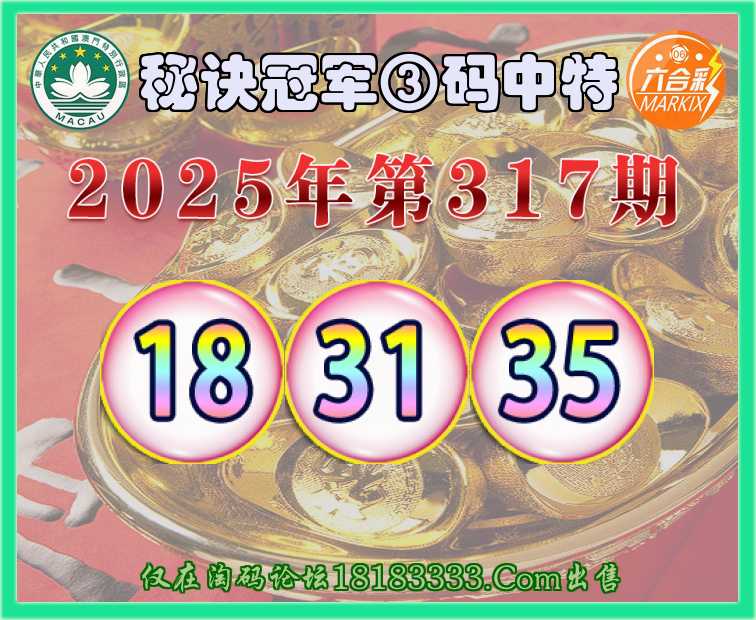 317期:【秘诀冠军】 ③码中特【18.31.35】开:18准