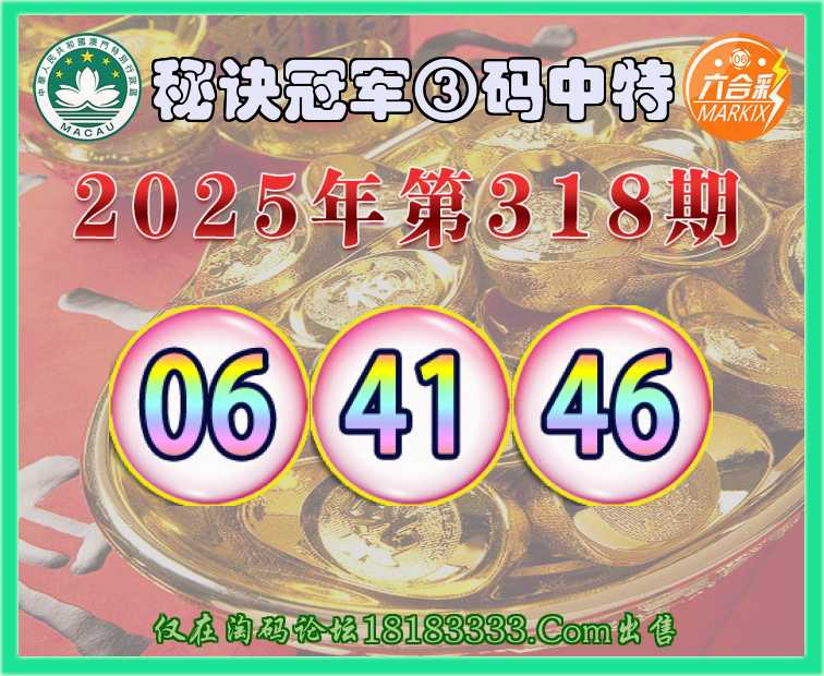 318期:【秘诀冠军】 ③码中特【06.41.46】开:06准