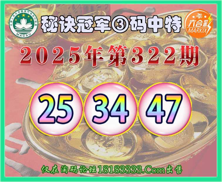 322期:【秘诀冠军】 ③码中特【25.34.47】开:47准