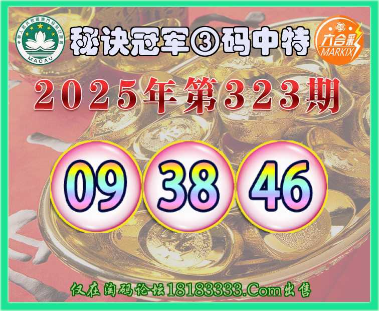 323期:【秘诀冠军】 ③码中特【09.38.46】开:09准