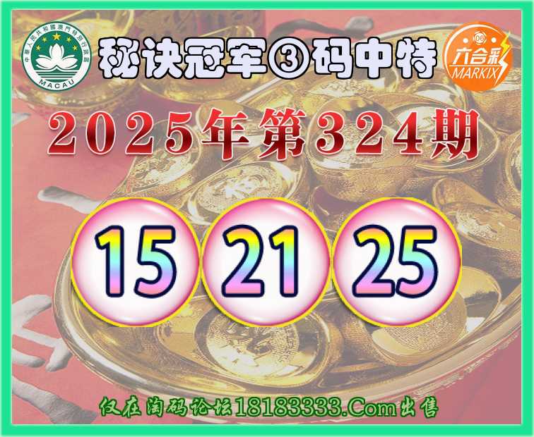 324期:【秘诀冠军】 ③码中特【15.21.25】开:15准