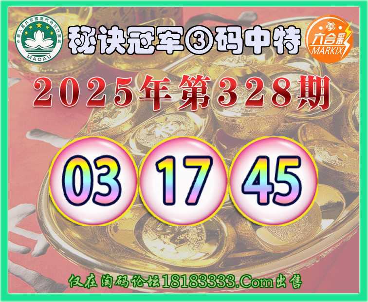 328期:【秘诀冠军】 ③码中特【03.17.45】开:03准