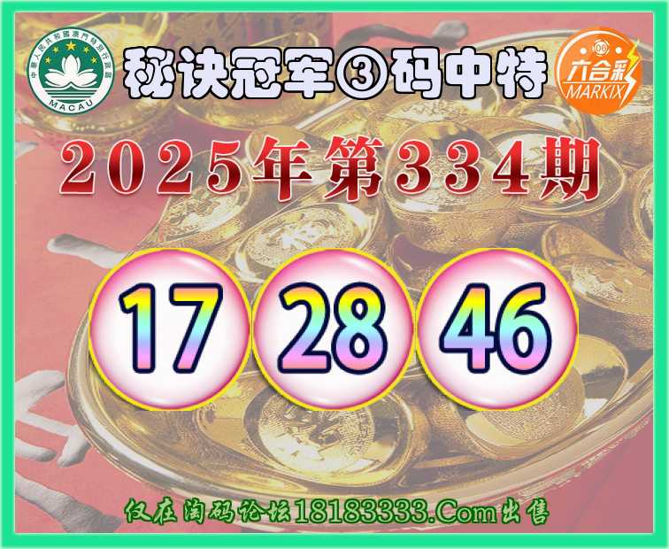 334期:【秘诀冠军】 ③码中特【17.28.46】开:46准