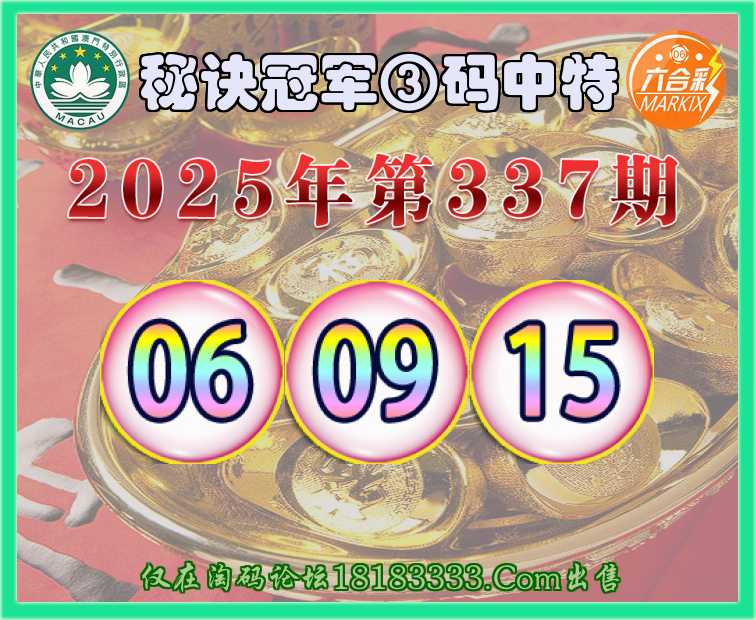 337期:【秘诀冠军】 ③码中特【06.09.15】开:00准