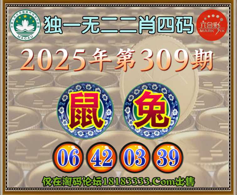 309期:『独一无二』二肖四码【鼠兔】【06.42.03.39】开:鼠06准
