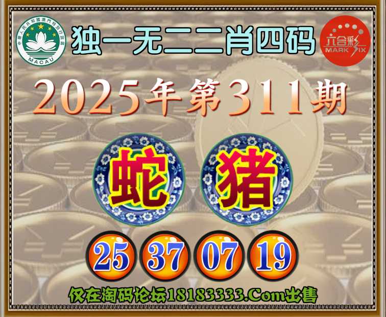 311期:『独一无二』二肖四码【蛇猪】【25.37.07.19】开:蛇37准