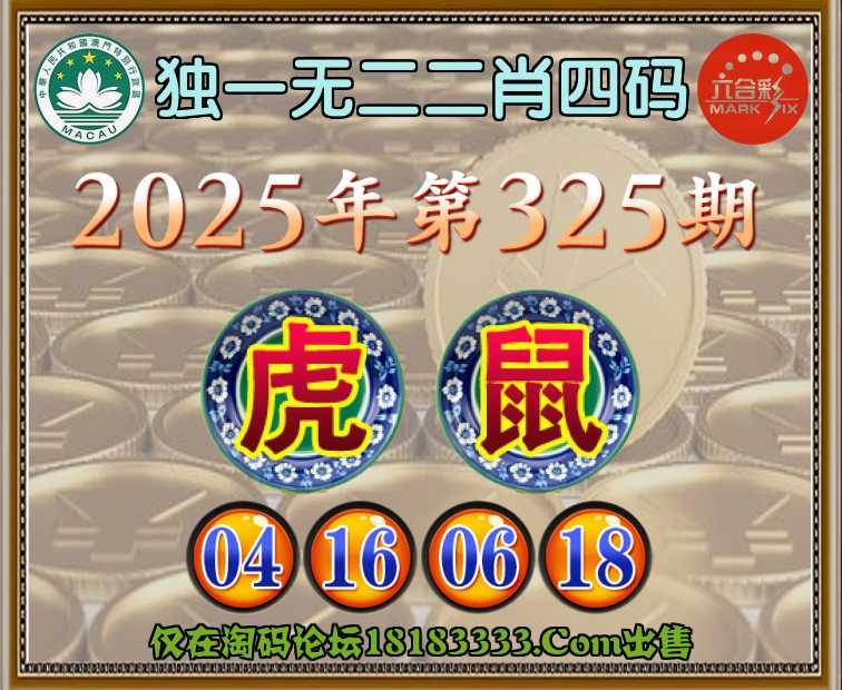 325期:『独一无二』二肖四码【虎鼠】【04.16.06.18】开:虎04准