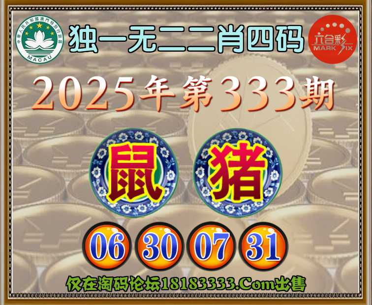 333期:『独一无二』二肖四码【鼠猪】【06.30.07.31】开:鼠06准