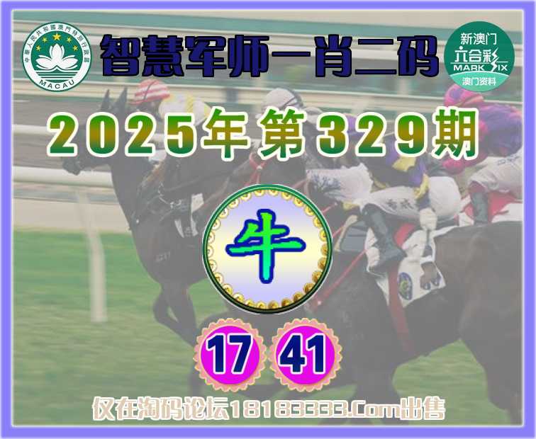 329期: 『智慧军师』 一肖二码【牛】【17.41】开:牛17准