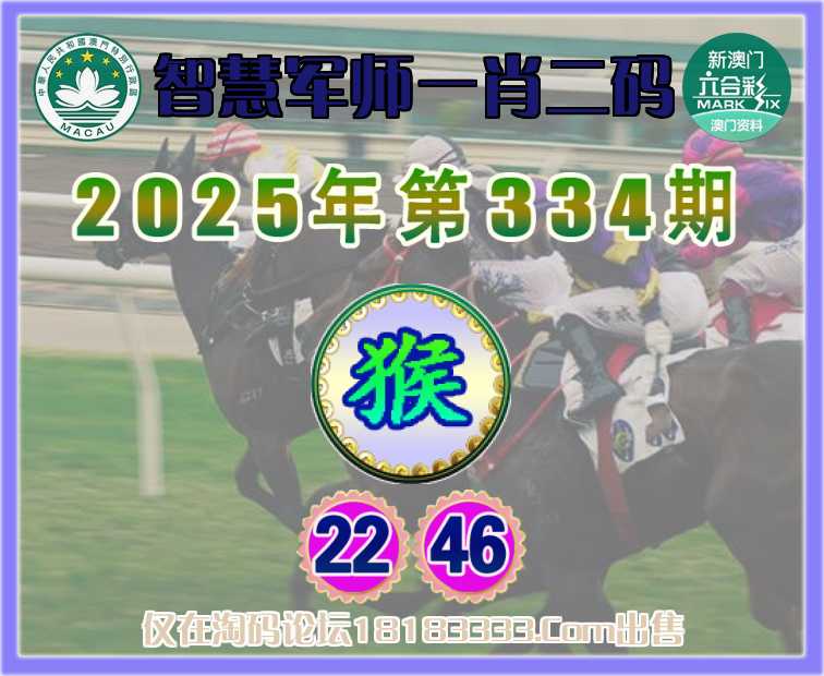 334期: 『智慧军师』 一肖二码【猴】【22.46】开:猴46准