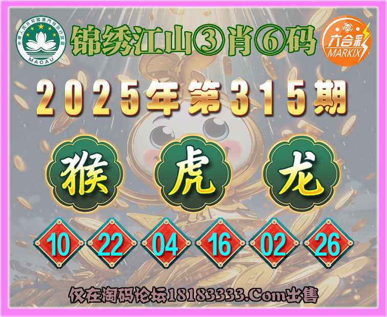315期:〖锦绣江山〗 ③肖⑥码【猴虎龙】开:虎04准