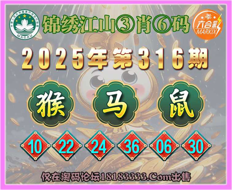 316期:〖锦绣江山〗 ③肖⑥码【猴马鼠】开:马24准