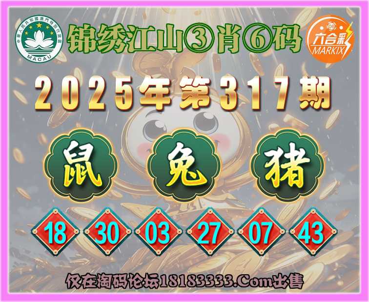 317期:〖锦绣江山〗 ③肖⑥码【鼠兔猪】开:鼠18准