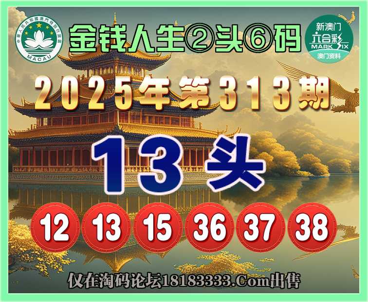 313期:《金钱人生》 ②头⑥码【13头】开:龙38准