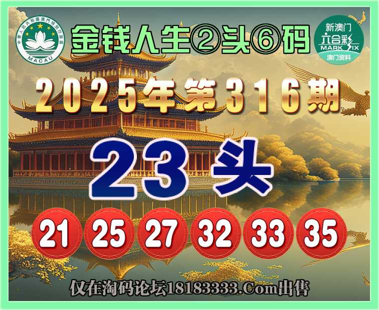 316期:《金钱人生》 ②头⑥码【23头】开:马24准
