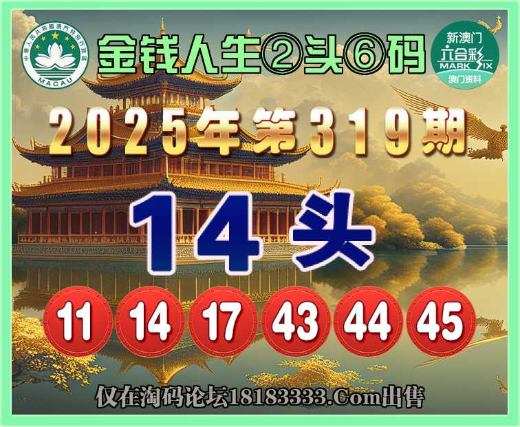 322期:《金钱人生》 ②头⑥码【14头】开:羊47准