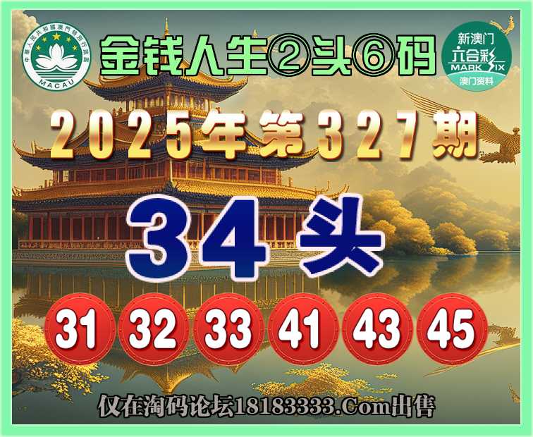 327期:《金钱人生》 ②头⑥码【34头】开:蛇37准