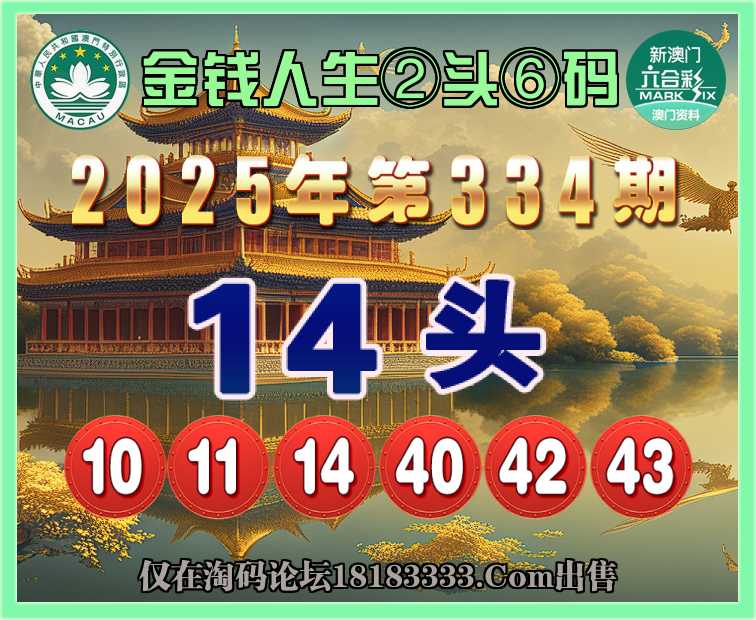 334期:《金钱人生》 ②头⑥码【14头】开:猴46准
