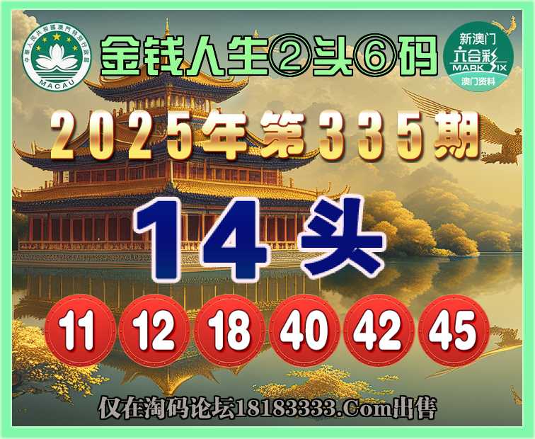 335期:《金钱人生》 ②头⑥码【14头】开:狗44准